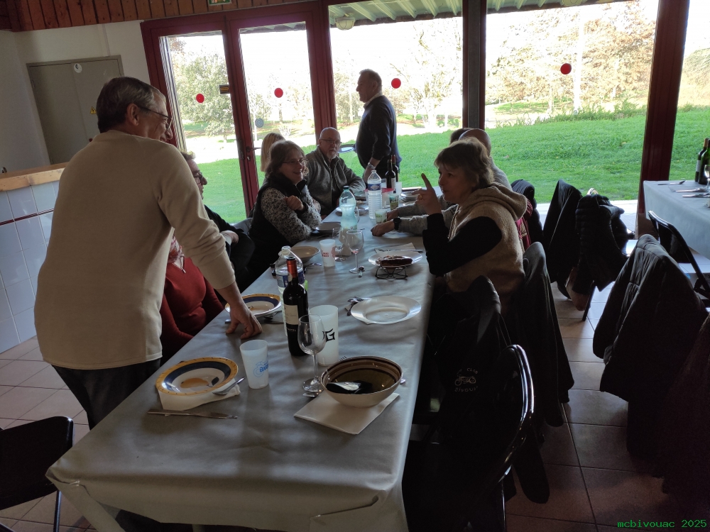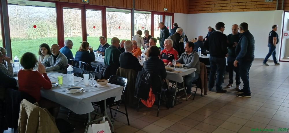 Les membres du Club et leurs conjoint(e)s se sont retrouvés à la salle festive du domaine du Pinsan pour partager un bon repas dans une ambiance chaleureuse. Pas moins de 46 participants étaient au rendez-vous !